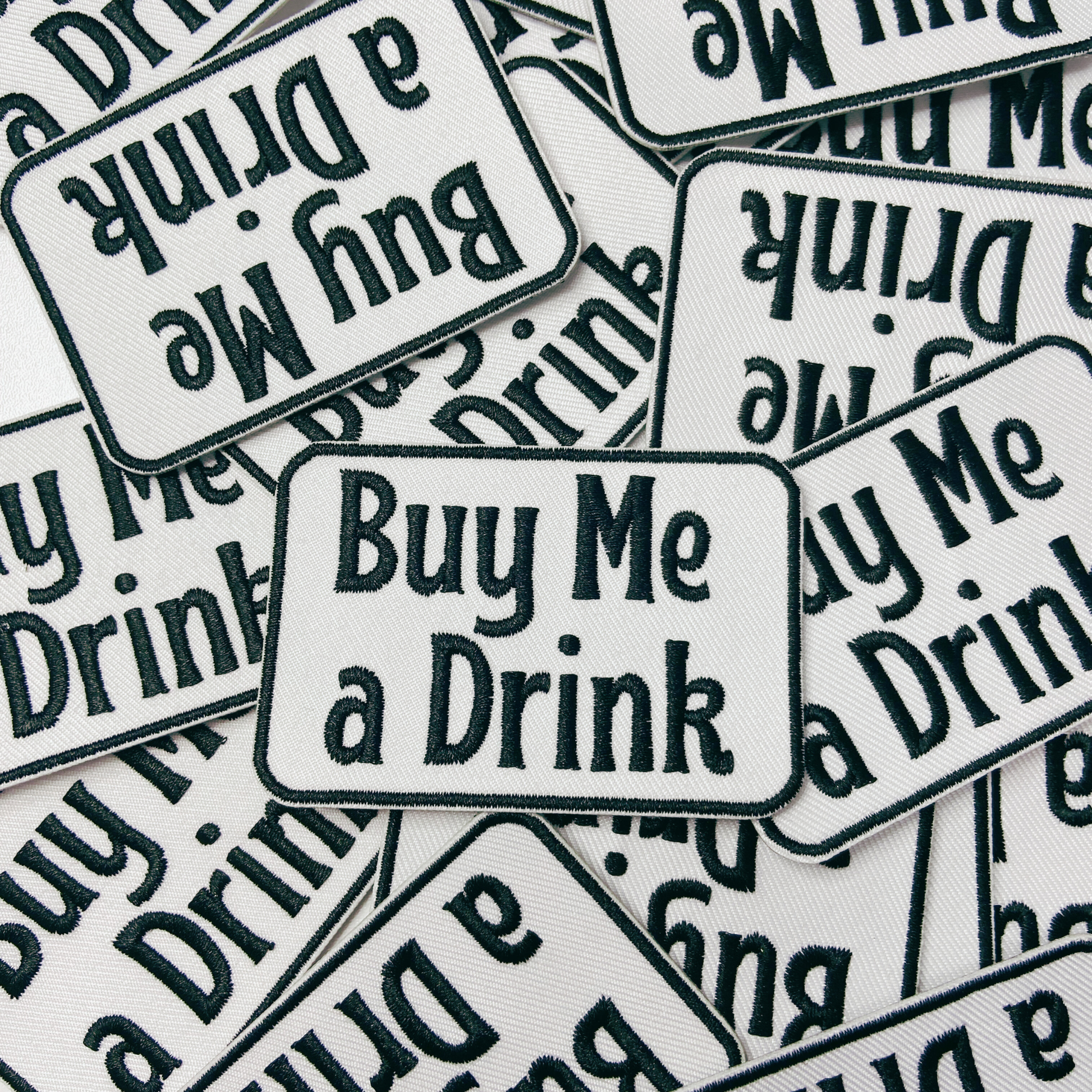 3" Buy Me a Drink - White & Black - Embroidered Hat Patch