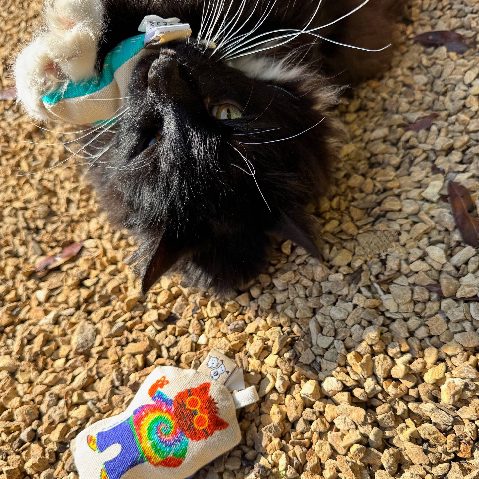 Get ready to peace, love, and pounce with the Hippie Kitty & VW Van Go Kitty Go! Cat Toy Set! This far-out set features a flower-power kitty and a retro VW-style van, bringing some serious ‘70s vibes to your feline’s playtime. Packed with irresistible catnip and crinkle paper, these toys will keep your cool cat entertained for hours.