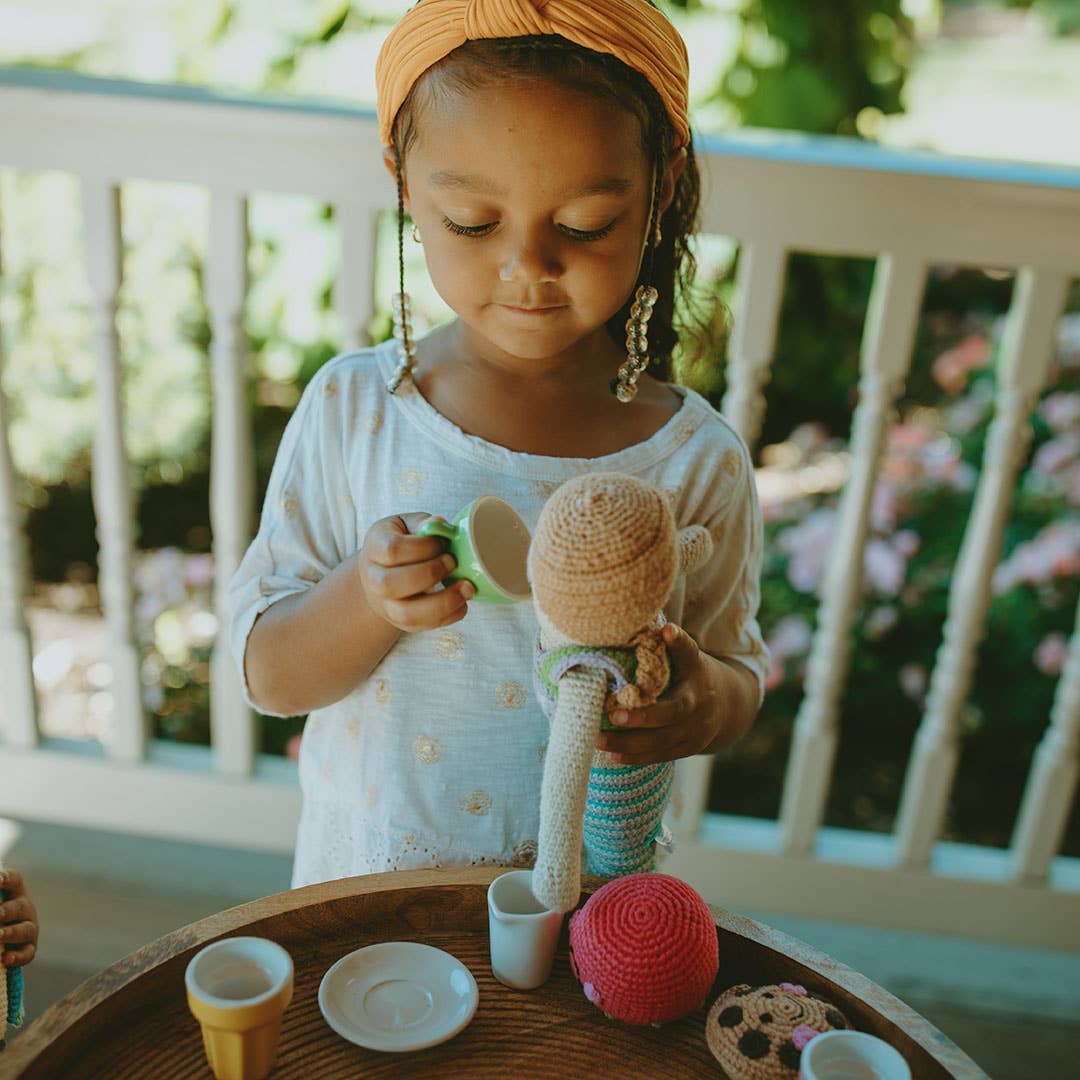 Dive into adventure with our Handmade Mermaid Doll in Turquoise! This enchanting mermaid is crafted from soft, fair trade cotton, featuring a stunning turquoise tail and top with embroidered details. Perfect for little hands to grasp and explore, encouraging sensory development and imaginative play.