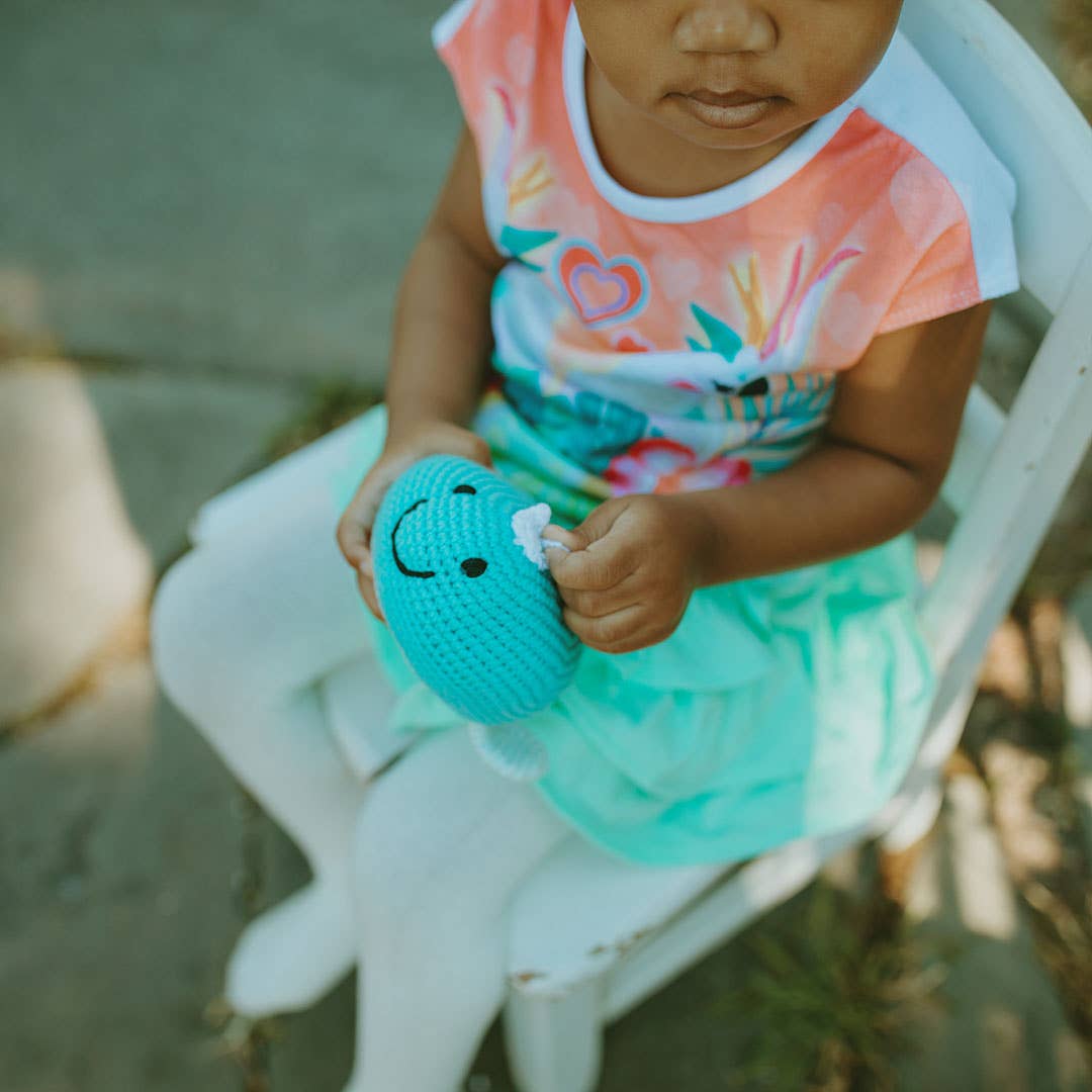 Handmade Turquoise Whale Rattle – Soft & Sensory-Friendly