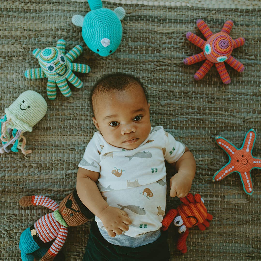 Lightweight and easy to hold, this adorable whale rattle brings joy and comfort while supporting fair-trade artisans. A must-have for your baby collection!