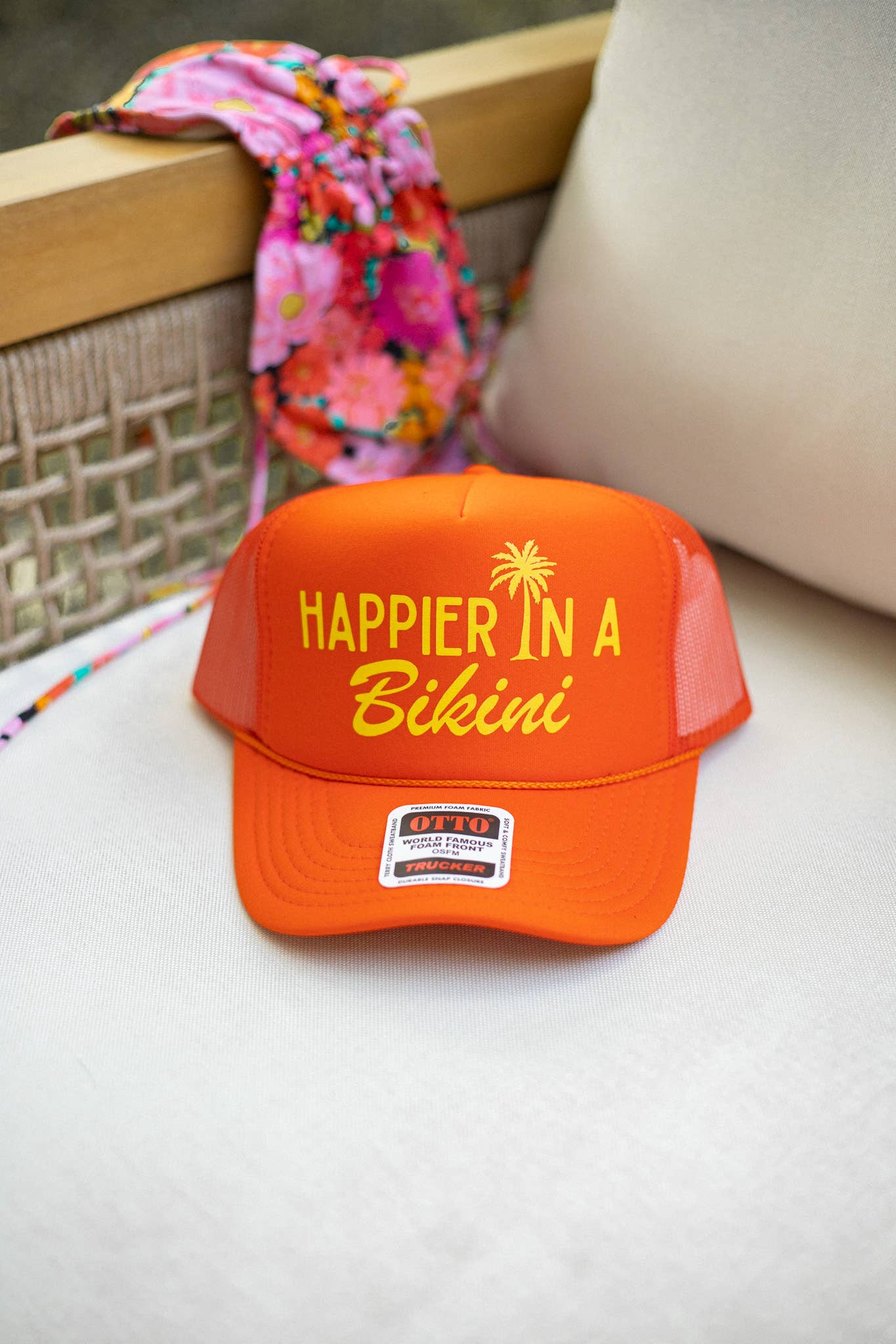 Sun’s out, Buns out — the Happier in a Bikini trucker hat says it loud and proud!