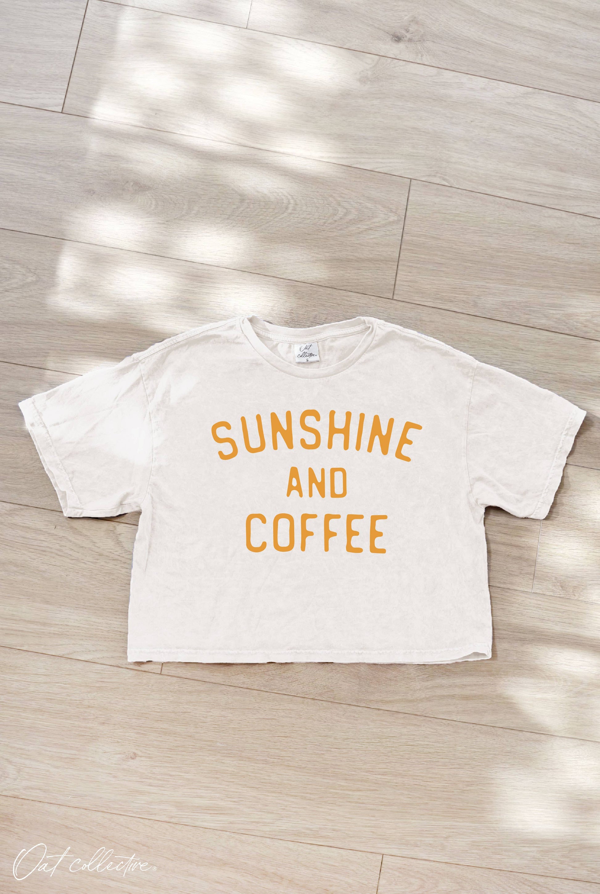 SUNSHINE AND COFFEE Cropped Mineral Washed Graphic Top